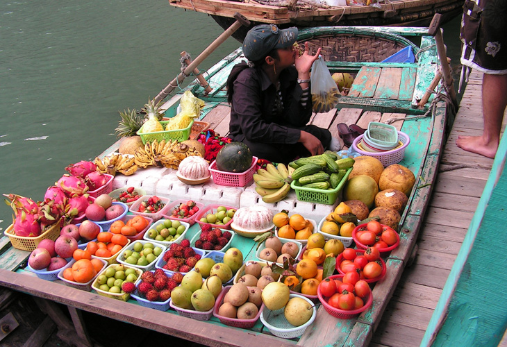 Arrive Ha Long,Vietnamese Traditional Meals on boat.