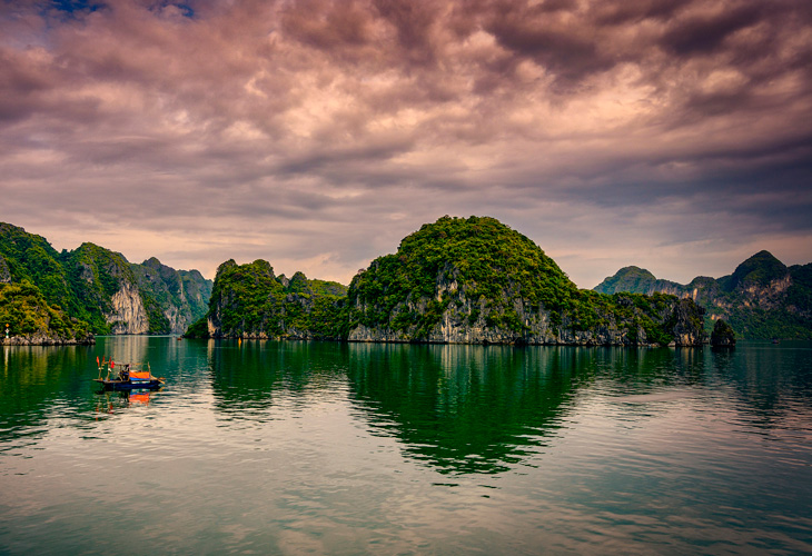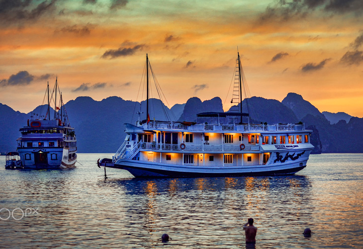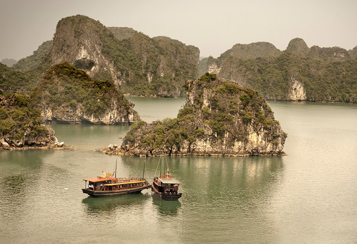 A new exciting day waiting us to discover, we depart for Ha Long, a UNESCO World Natural Heritage Site. Halong Bay has an area of around 1,553 km2, including 1,960 - 2,000 islets, most of which are limestone. The core of the bay has an area of 334km2 with a high density of 775 islands and islets in aIl sides reflecting on turquoise water. The limestone in this bay has gone through 500 million years of formation in different conditions and environments. There are a lot of photo opportunity on our way to Ha Long as we drive through the rural area, street markets, paddy fields, vegetable farms, poultry farms and lotus farms. We take a rest stop Hong Ngoc shop after 2 hour drive for a coffee break then continue to Ha Long Bay. At midday we board the overnight junk for the cruise. A welcome drink is welI prepared for us as we get on board then check in and enjoy a pleasant cruise on the bay. Seafood lunch is served on board while the junk is slowly going among the islands and islets. There are some activities for us to join in in this afternoon; visiting to the cave, swimming at Ti Top beach, climbing up the top of Ti Top Island for panoramic view of the bay, kayaking in late afternoon or joining squids finishing at night. Th~ junk is anchored in a quiet bay for overnight. Dinner and overnight on board.