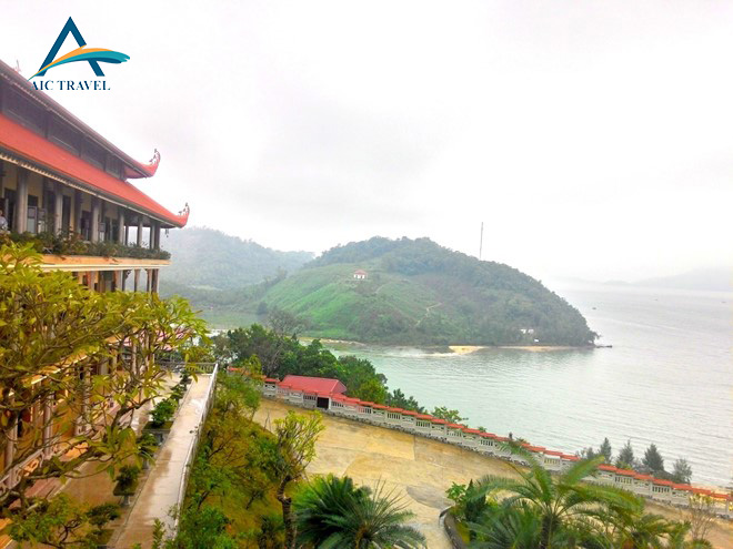 09h30: Quý khách lên xe, khởi hành đi Chùa Cái Bầu - Thiền Viện Giác Tâm.Thiền Viện Giác Tâm nằm trên cao, dựa lưng vào núi, hướng ra vịnh Bái Tử Long quanh năm sóng vỗ. Chùa được xây dựng trên nền chùa Phúc Linh Tự cũ với tên: Thiền Viện Giác Tâm có quy mô lớn, nội thất công phu, rất đẹp. Đền Cái Bầu thờ Đông Hải Đại vương Đoàn Thượng, tương truyền là một chí sĩ trung kiên, giàu lòngnhân ái, đã từng đem hết gia sản riêng phân phát cho dân nghèo đói, được vua Lý ban tước hiệu Đại Vương.