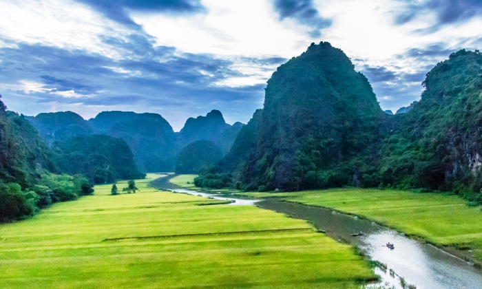 13:30 Xe và HDV đưa Quý khách tiếp tục hành trình thăm quan khu du lịch sinh thái Tràng An, tới bến đò Tràng An, HDV mua vé và sắp xếp Quý khách lên đò(Sức chứa 5 khách/đò). Đò đi dọc theo dòng sông giữa những cánh đồng lúa, thăm khu du lịch sinh thái Tràng An nơi những dải đá vôi đan xen tạo nên một không gian huyền ảo, kỳ bí. Quý khách đi đò thăm hang sáng, hang tối, hang nấu rượu và tìm hiểu văn hóa lịch sử nơi đây.