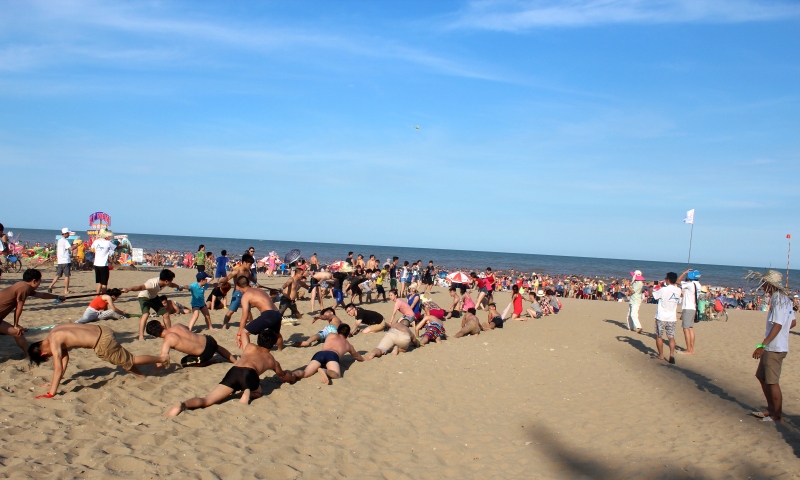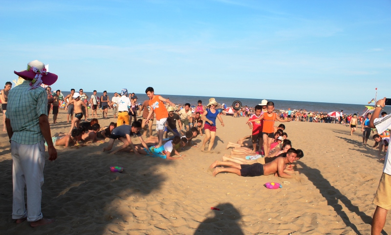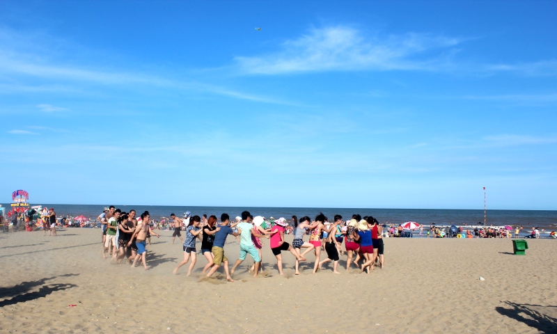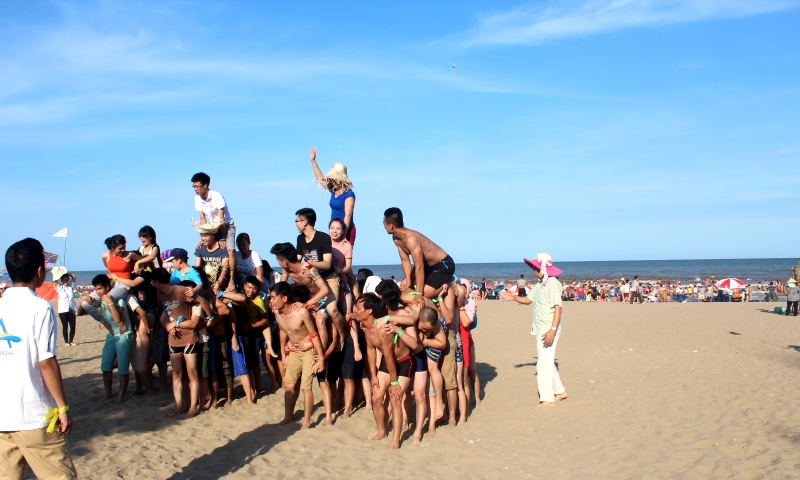 15h00 Quý khách tập trung tại bãi biển tham gia chương trình Team Building (đoàn trên 40 khách) với các trò chơi tập thể có thưởng do các hoạt náo viên của công ty du lịch Đông Dương Á Châu tổ chức. Kết thúc chương trình Quý khách tự do tắm biển Sầm Sơn.Sau bữa tối ,Quý khách tự do dạo chơi phố biển về đêm