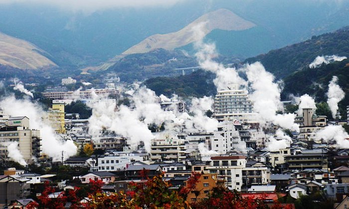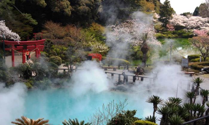 Suối nước nóng nổi tiếng tại Beppu: Umi Jigoku – hay còn gọi là "Biển Địa Ngục": Đây cũng là một trong những "địa ngục" đẹp nhất trên thế giới. Umi Jigoku là một hồ nước màu ngọc lam tương tự như biển, với độ sâu 120 mét và nhiệt độ trong hồ là 90 độ C, nhiệt độ đủ để luộc trứng.